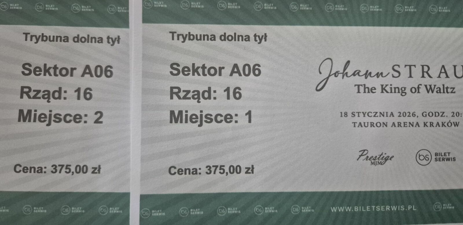 Dzień dobry, sprzedam dwa bilety na koncert Filharmoników Wiedeńskich 18.01.2026 Tauron Arena Kraków. Tel. 519 - pokaż numer telefonu -Justyna