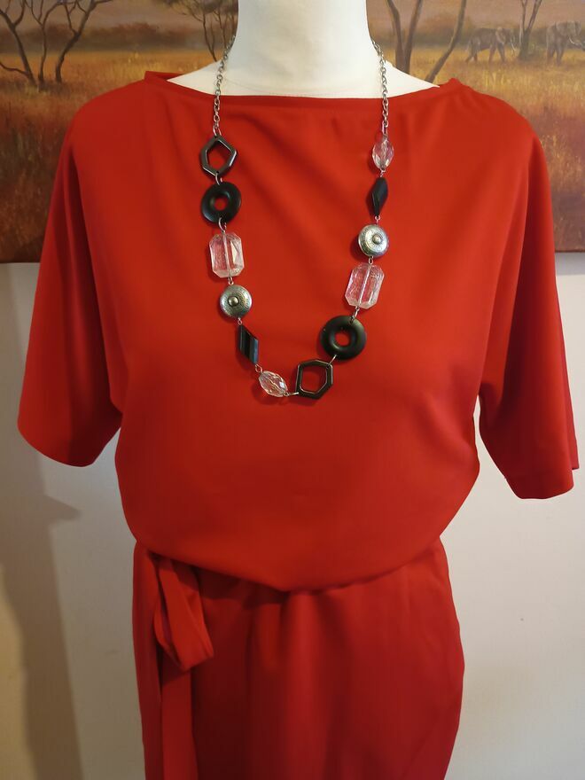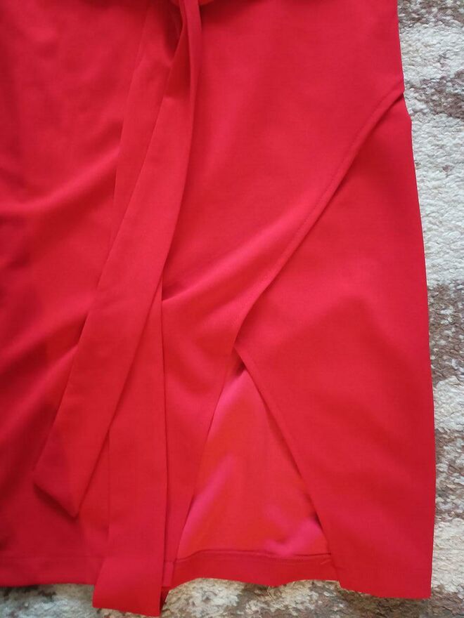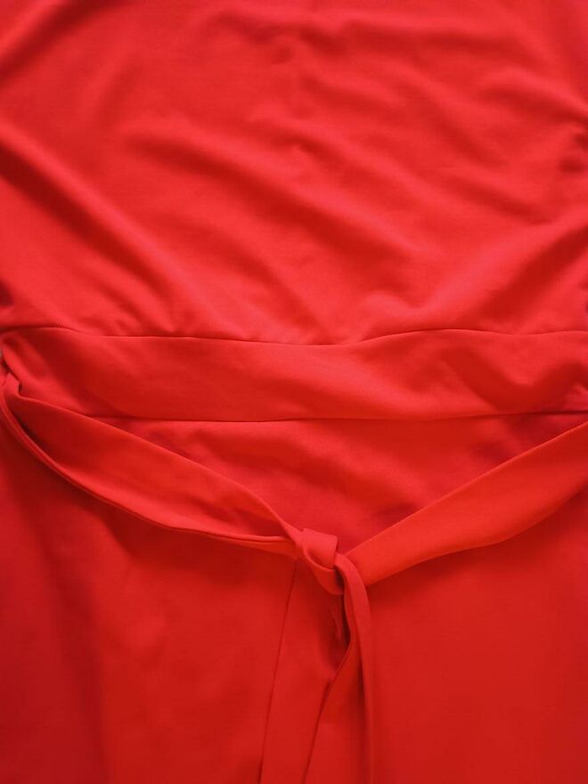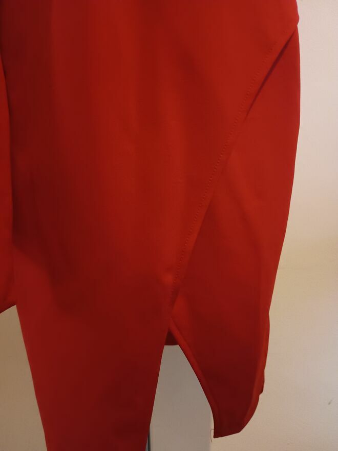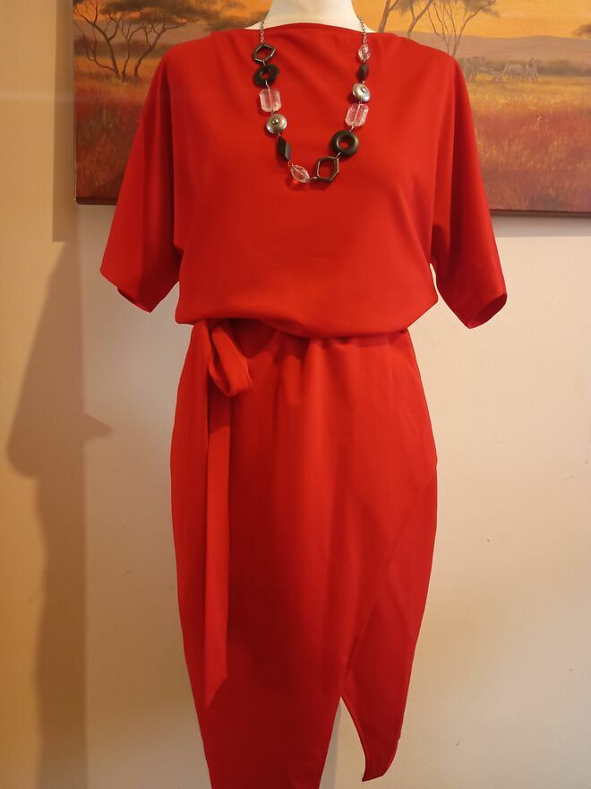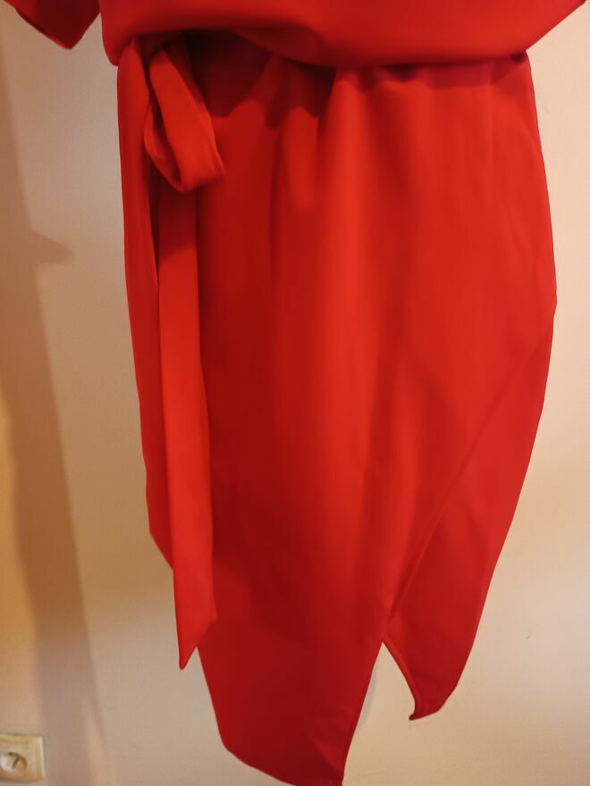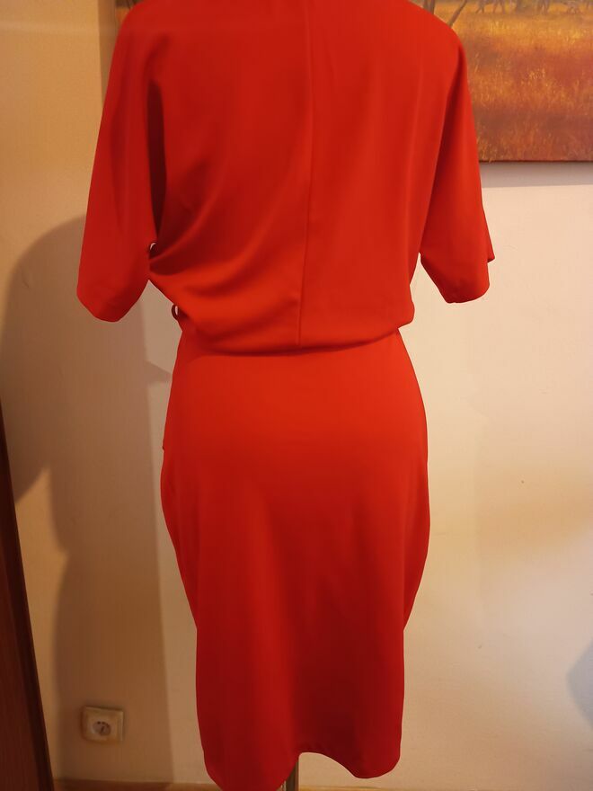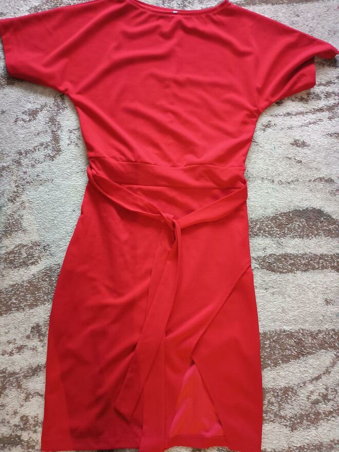 Czerwona sukienka spolot dzianinowydł.116 cm jesli ułozona tak jak na manekinie to ok.10 cm krótsza moze byc