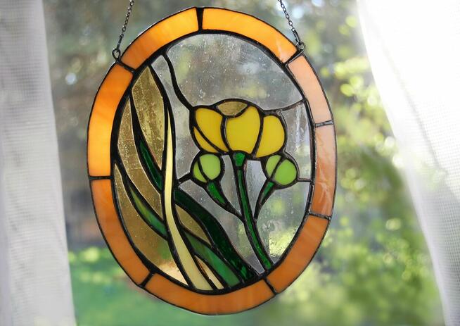 Kaczeńce - piękny witraż w technice Tiffany\'ego. Witraż jest wykonany ze szkła witrażowego przezroczystego z ...