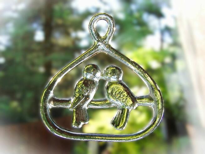 Kolekcjonerska, stara, szklana zawieszka do okna z ptaszkami, projektant Bertil Vallien, Kosta Boda, Szwecja. Zawieszka jest ...