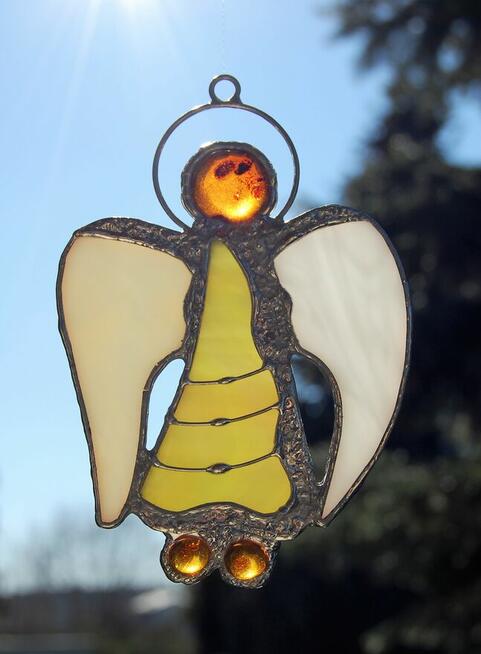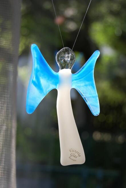 Anioł - witraż, zawieszka ręcznie wykonana ze szkła w technice fusingu, w manufakturze Victoria Glas na duńskiej wyspie ...
