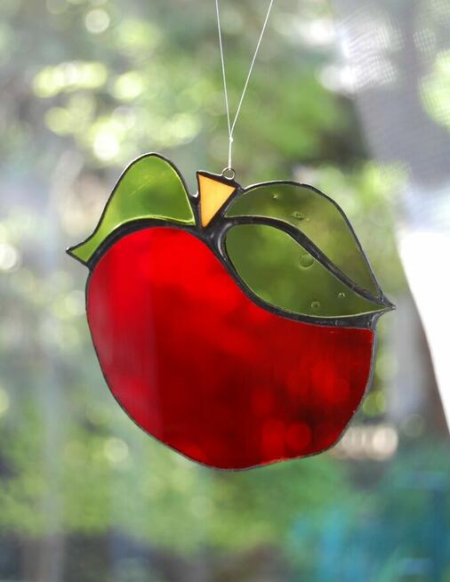 Jabłko - witraż wykonany w technice Tiffany\'ego. Jabłko jest wykonane ze szkła witrażowego przezoczystego w ...