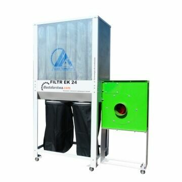 Filtr EK-24 o wydajności 4800m³/h z wentylatorem WTK-4 ze zrzutem do worków tekstylnych 2 x 220lNasz autorski produkt, filtr EK-24 to uniwersalne urządzenie do odciągu i filtracji trocin, pyłów i zanieczyszczeń pochodzących z obróbki drewna, materiałów drewnopodobnych oraz innych materiałów produkcyjnych. Doskonale nadaje się do współpracy z obrabiarkami CNC oraz ploterami.