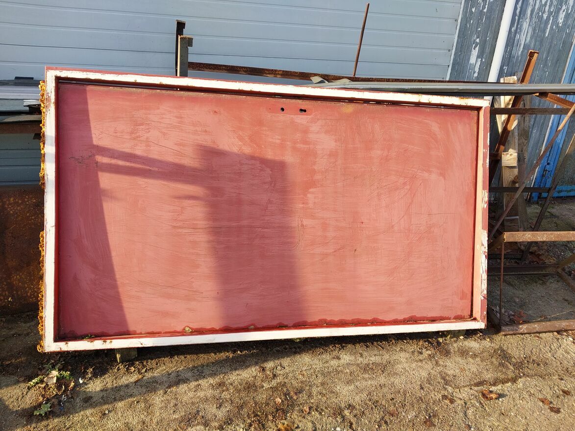 Sprzedam stalowe(pancerne) drzwi z demontażu wraz z futryną z kwadratowej rury stalowej , skrzydło obustronnie kryte blachą płaską światło przejścia 110x200Cena za komplet 250 zł.