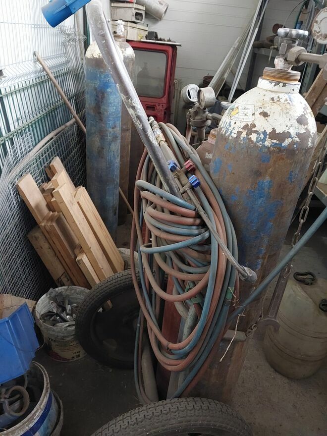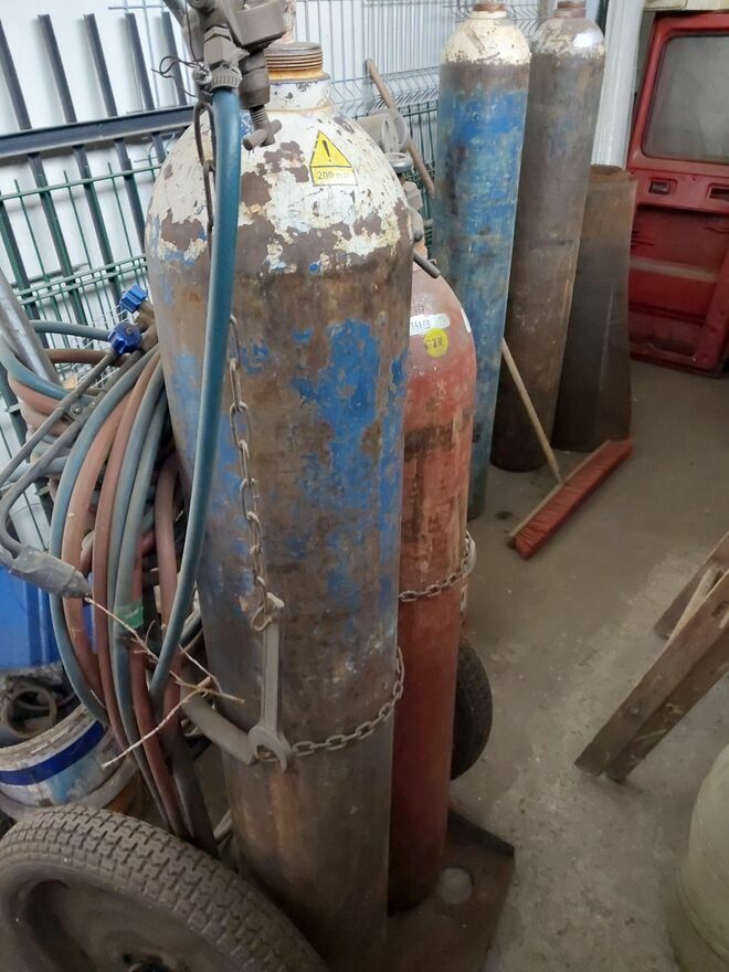 Sprzedam zestaw gazów tlen, acetylen, węże, palnik .Całość na wózku jak na fot. plus 2butle tlenowe w tym jedna pełnaSprawdź zainteresowanie tym ogłoszeniem
